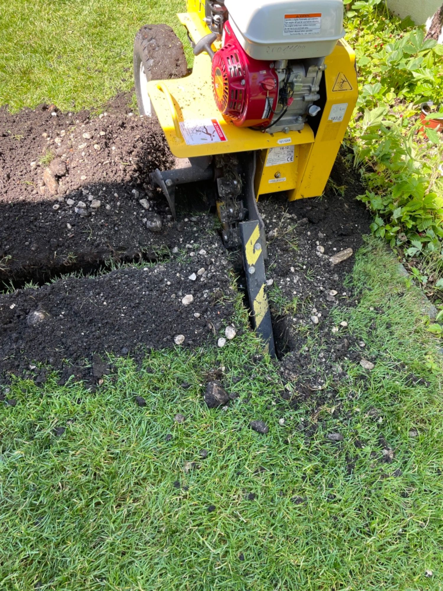 Mit der Umkehrfräse wird die alte Rasennabe und Steine untergearbeitet, obenauf bleibt eine feine Schicht Erde liegen.