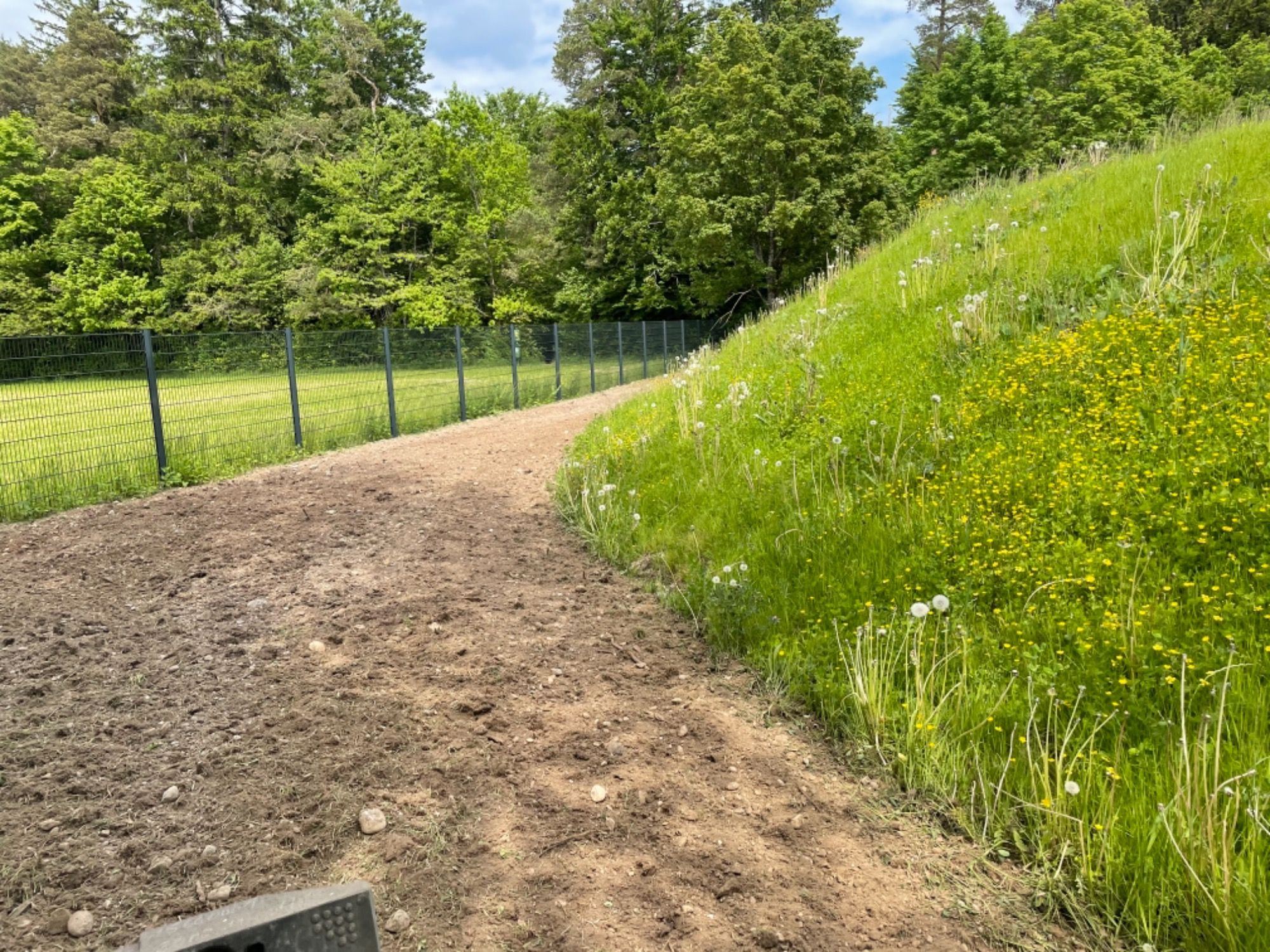 Auch bei den größten Flächen geht es nicht ohne eine kleine Handwalze, die in den Ecken und unter Bäumen zum Einsatz kommt.