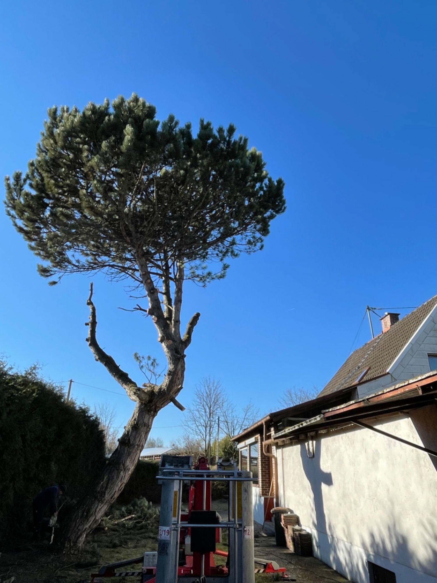 Nicht immer ist Platz zum einfachen umschneiden eines Baumes, Baumfällung mit Hebebühne und Entsorgung