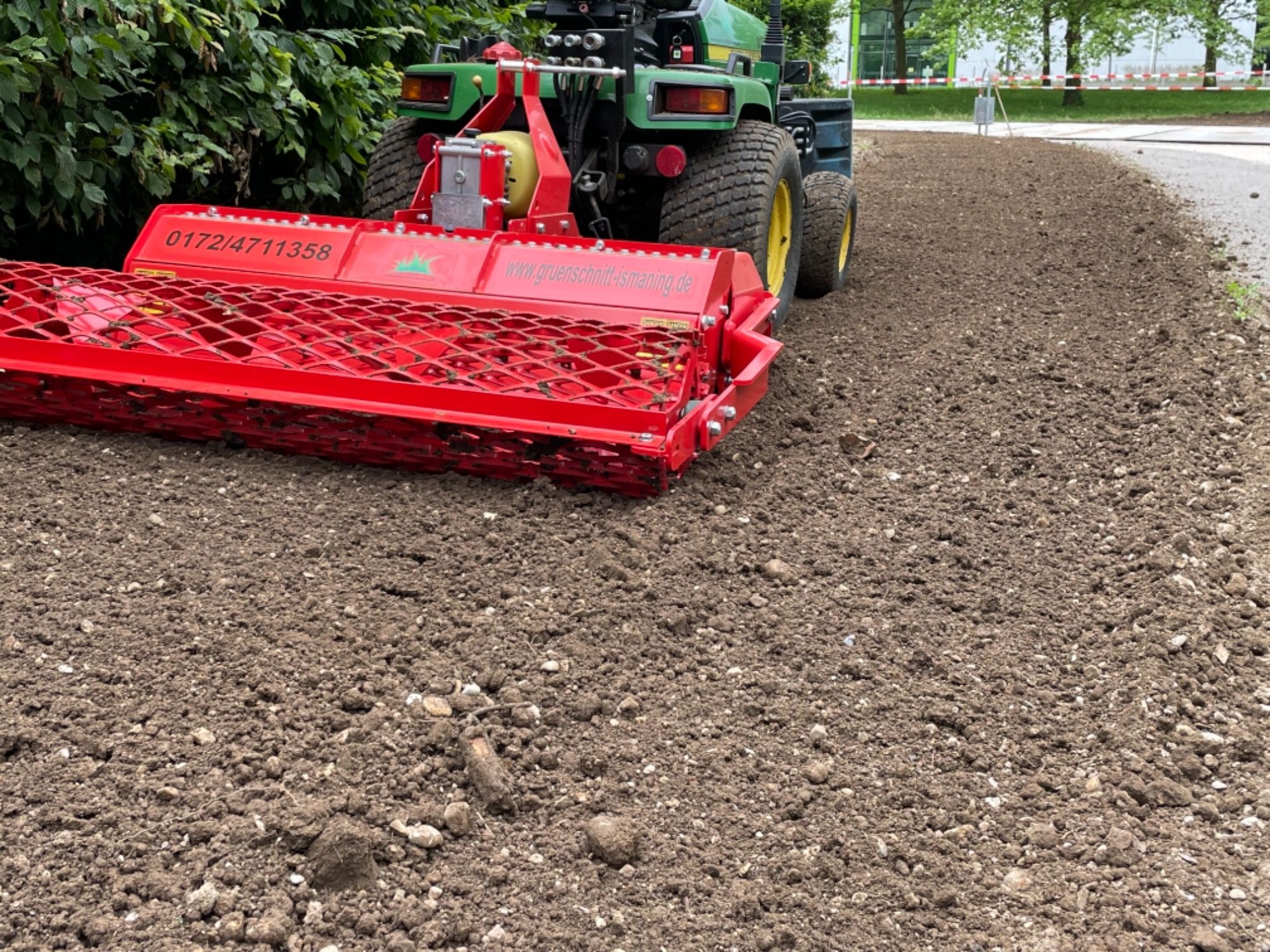 Mit der angebauten Gitterwalze wird die gefräste Erde zeitgleich für die Neuansaat leicht vorverdichtet.